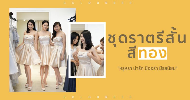 ชุดราตรีสั้นสีทองจะทำให้สาวๆได้ลุคน่ารัก เรียบหรู มีรสนิยม เป็นสาวคลาสซี่ที่ใครๆต่างต้องตกตะลึงกับออร่าเฉิดฉายจากสาวๆในชุดราตรีสั้นสีทอง