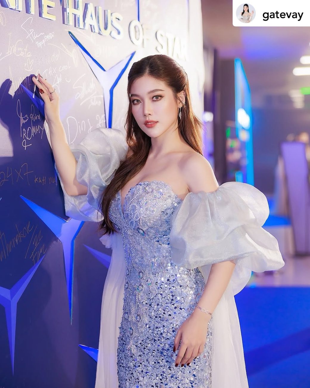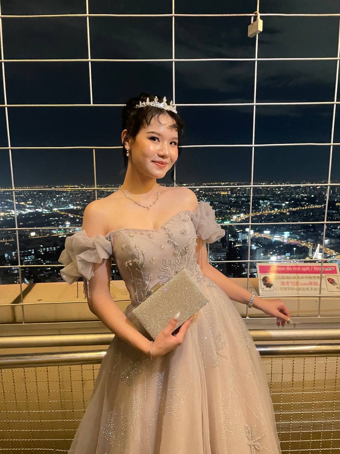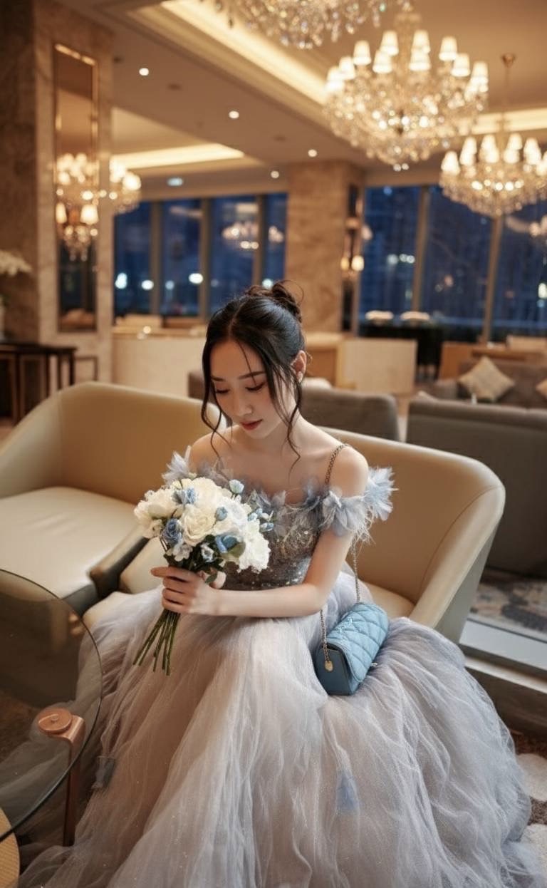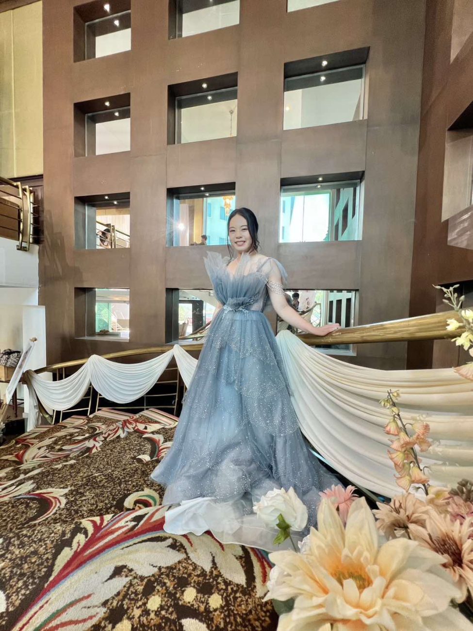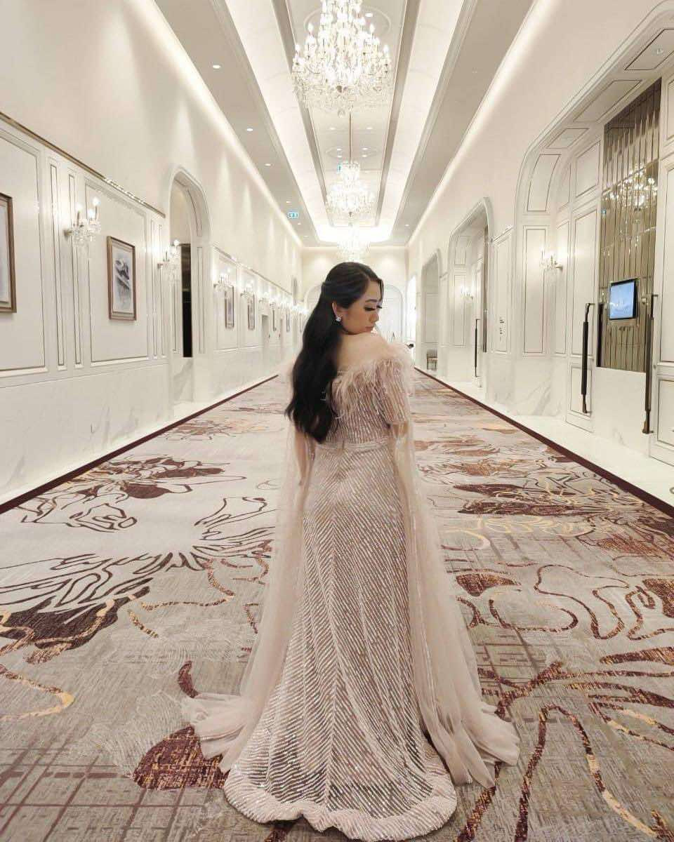 ชุดราตรีผ้ากลิตเตอร์ คือชุดที่ ดึงแสง ดึงกล้อง ดึงสายตา มากที่สุด ไม่ว่าจะถ่ายในห้องจัดเลี้ยง แสงน้อย แสงส้ม หรือแบ็กดรอปดอกไม้ ชุดจะสะท้อนแสงทำให้ตัวคุณโดดเด่นแบบ นางเอกเดินพรมแดง ✨