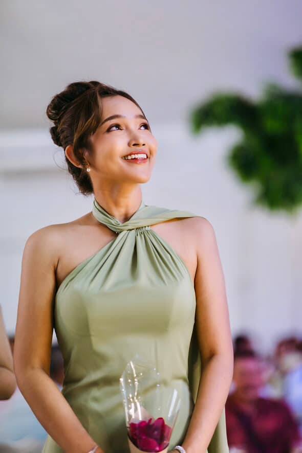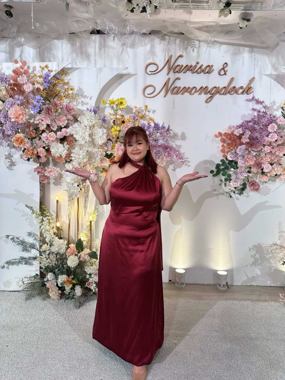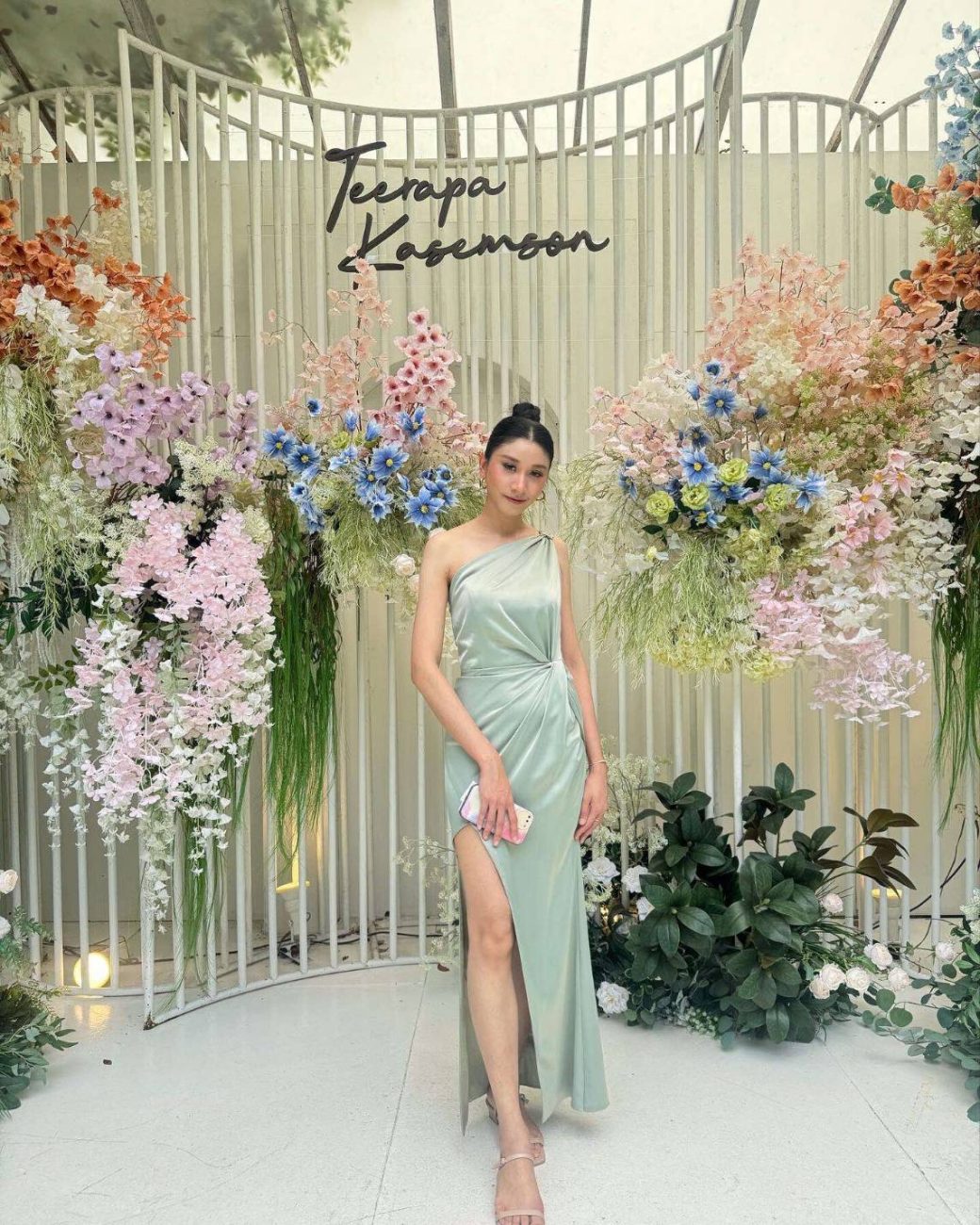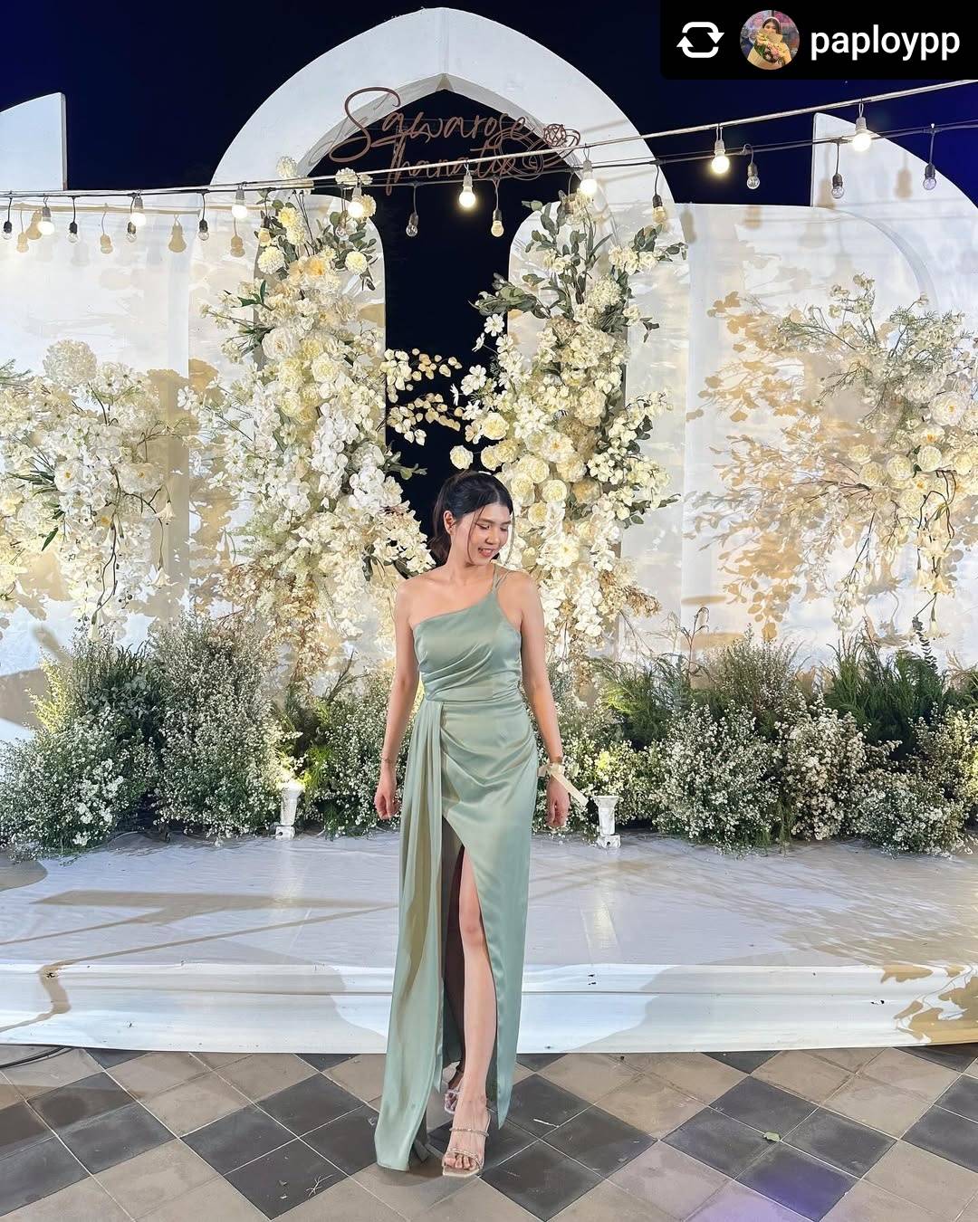 - บ่าเดี่ยวมีระบาย – เหมาะกับงานธีมหวาน ๆ