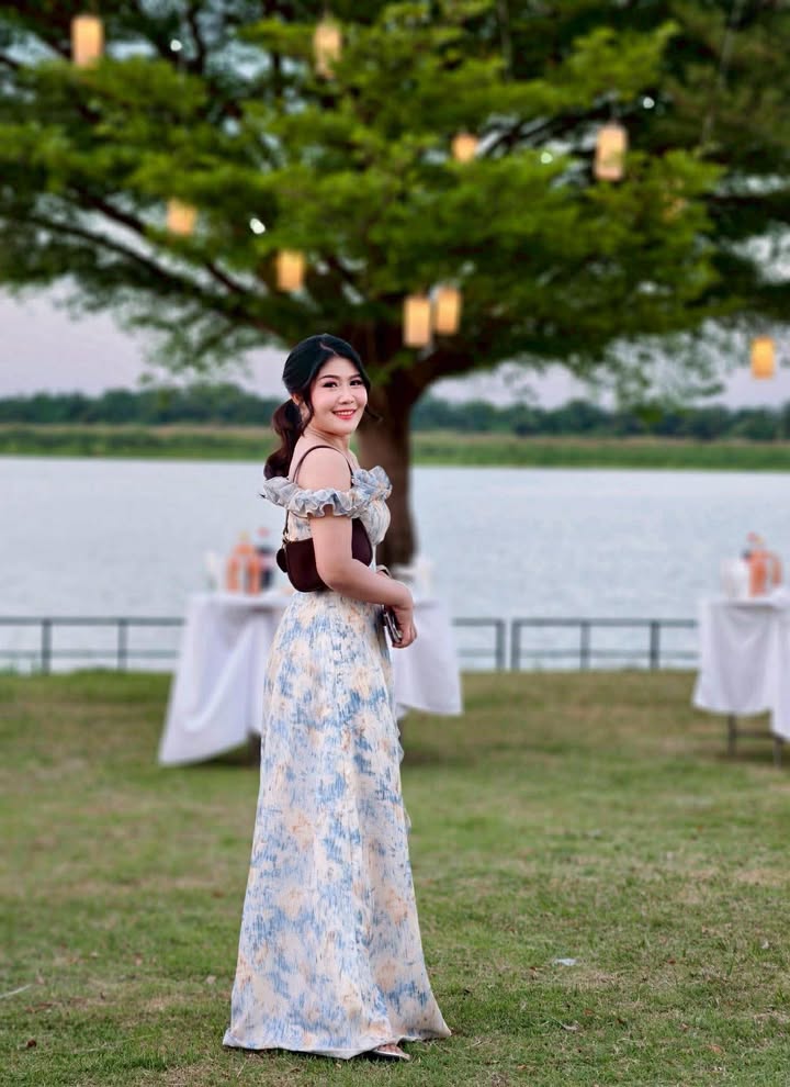 หนึ่งในความน่ารักของงานนี้คือ ชุดเพื่อนเจ้าสาวโทนชมพูพาสเทลลายอ่อน สไตล์ผ้าเนื้อแมทไม่เงา ทำให้เข้าได้ดีกับวิวธรรมชาติ และยังถ่ายรูปออกมาสวยมาก เหมาะกับทั้งงานเช้า งานเย็น และงานกลางแจ้งที่ต้องการความเรียบร้อยและความหวานในเวลาเดียวกัน
